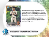 2025 Bowman Chrome Mega Box returns with the top rookies and prospects from 2025 Bowman Chrome Baseball, featured on exclusive Mega Chrome patterns only found in this release. Each box includes five Bowman Chrome Baseball packs and two exclusive Mega Chrome packs, packed with the most anticipated base cards and parallels of the year.