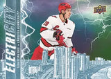 The Dazzlers set also returns for another season! These eye-popping cards boast a new design for the 2024-25 season and come in the blaster-exclusive Green versions. Dazzlers is a 150-card intra-series set, and Series 2 sports the next 50 cards. The checklist consists of star veterans! Collect one (1) Green Dazzlers card per box, on average!