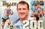 Cards celebrating legendary players who reached 300 or more NRL games, including Brett Kimmorley and Terry Lamb.